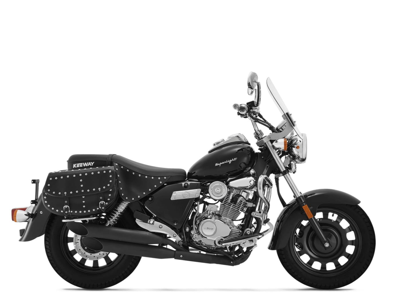 Superlight to kwintesencja klasycznego cruisera. Obłe kształty, głębokie błotniki, dużo chromu. Do tego nisko umieszczona kanapa, wysoka kierownica, szerokie podłogi, chromowane gmole i podwójny wydech. To wykwintne menu dla konesera wzrokowych doznań. Wysoka przednia szyba i nitowane sakwy sprawiają, że wygodnie można wybrać się w dalszą drogę.