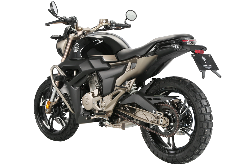 Zontes 125 G1 aluminium dostępny jest z bezdętkowymi kołami frezowanymi z lekkiego stopu o wyrafinowanych kształcie, które podkreślają jego zadziorny charakter.